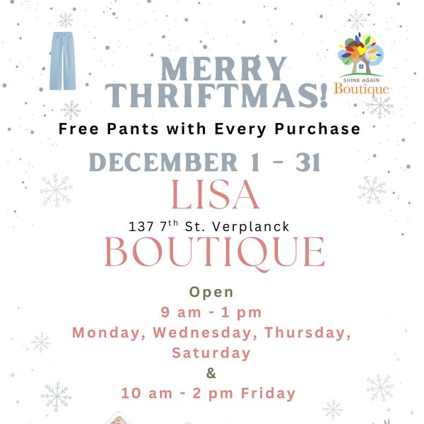 That's why we're giving away a FREE pair of PANTS with purchase at the LISA Boutique in December.
